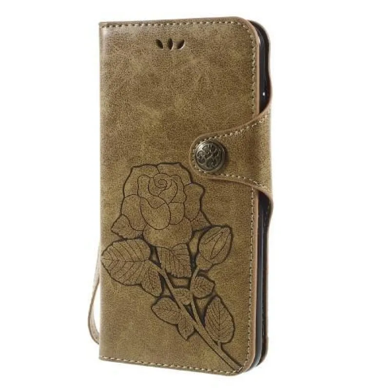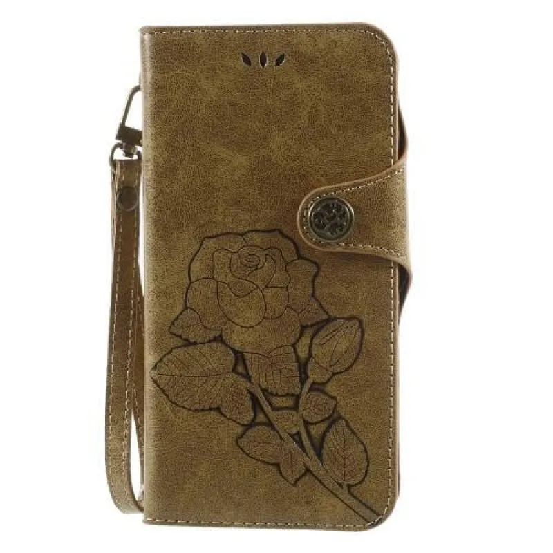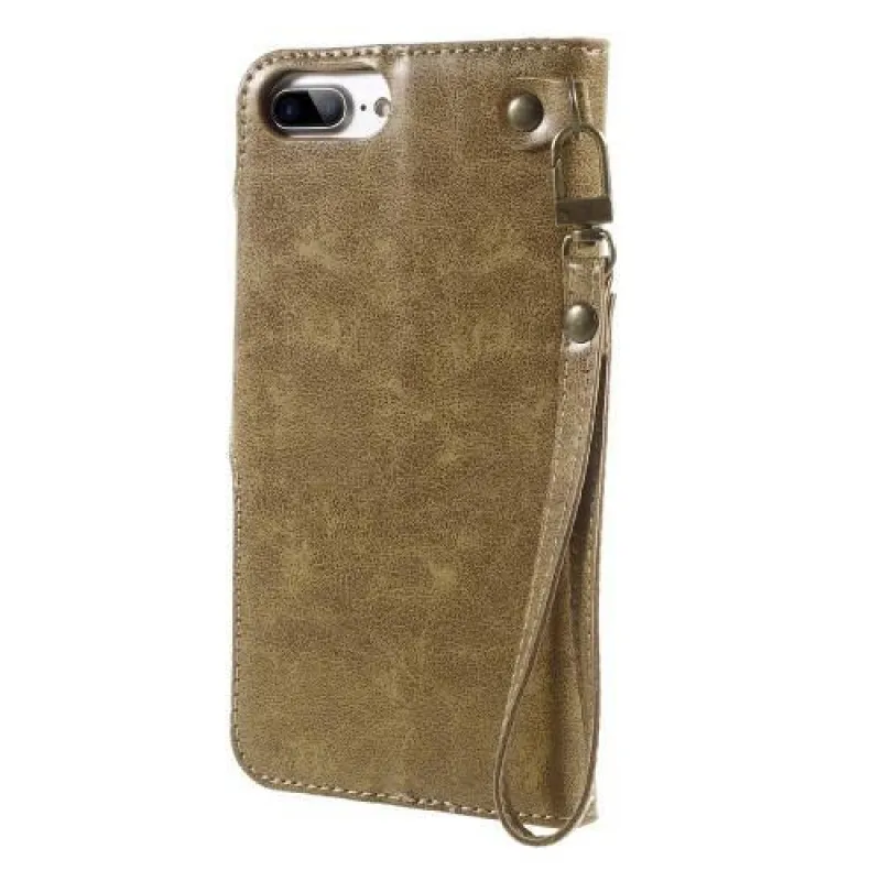 Rózsák elegáns PU bőr könyvtáska iPhone 8 Plus és 7 Plus készülékhez - arany színben