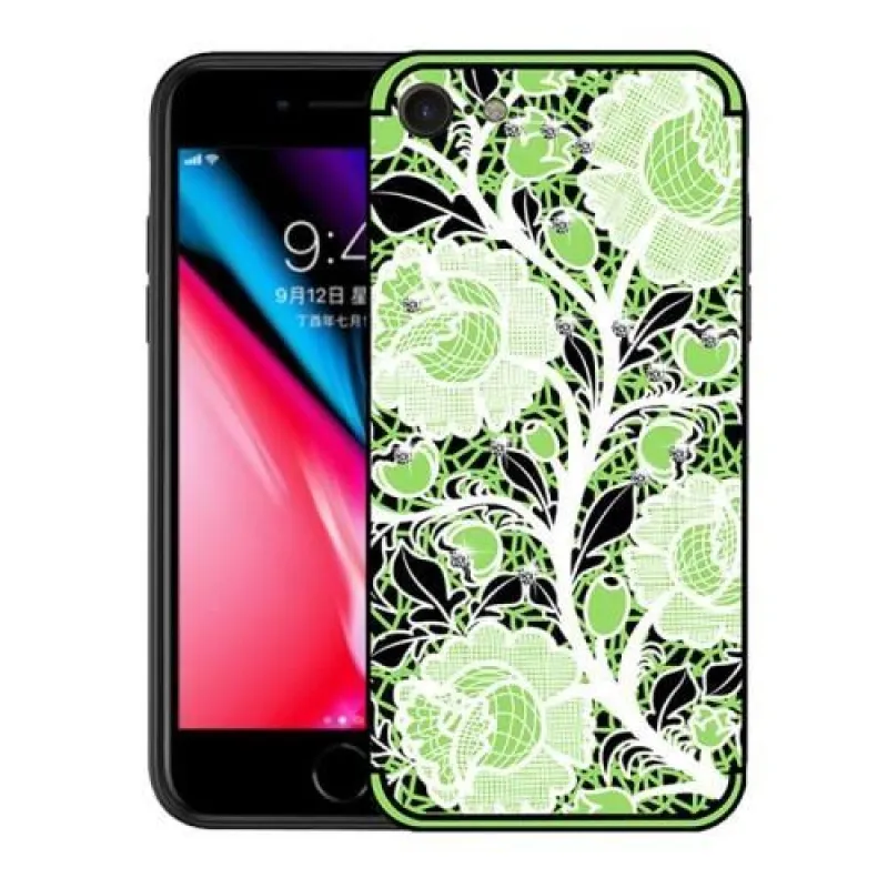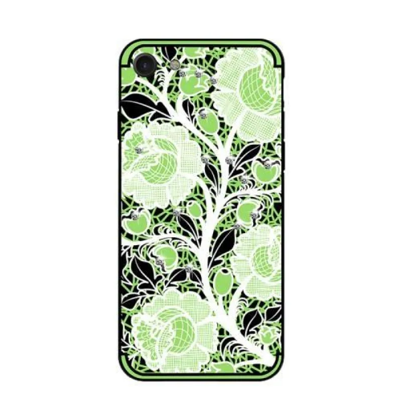Zöld virágokkal díszített, csillogó strasszkövekkel díszített zselés borító iPhone 8 vagy iPhone 7 készülékhez