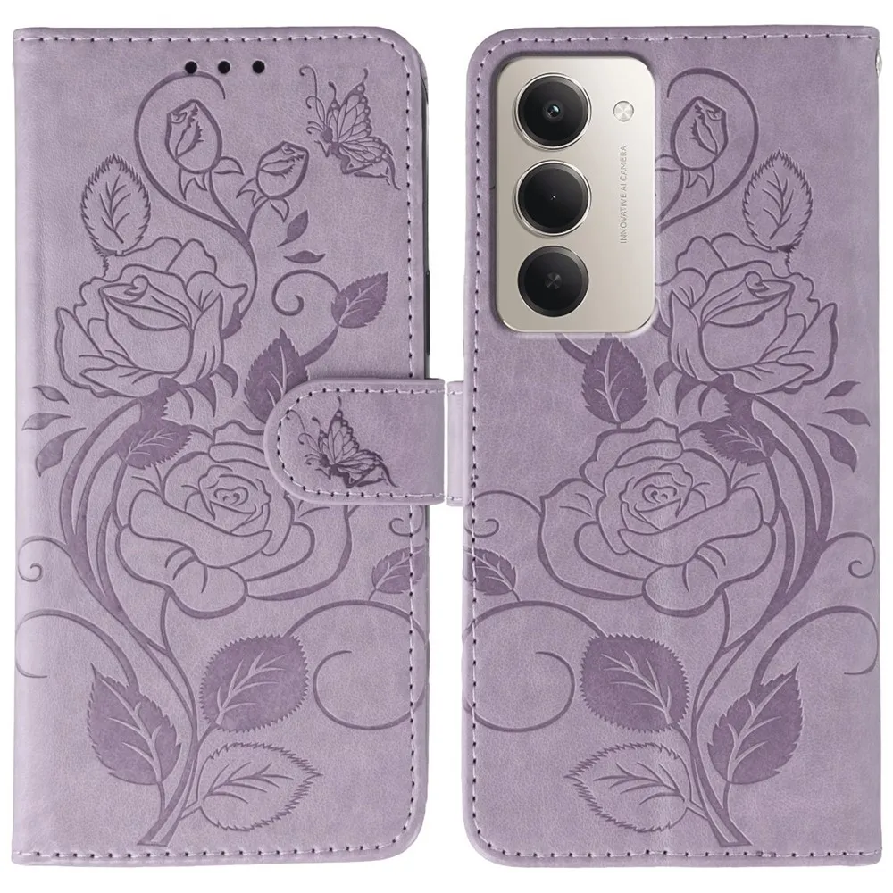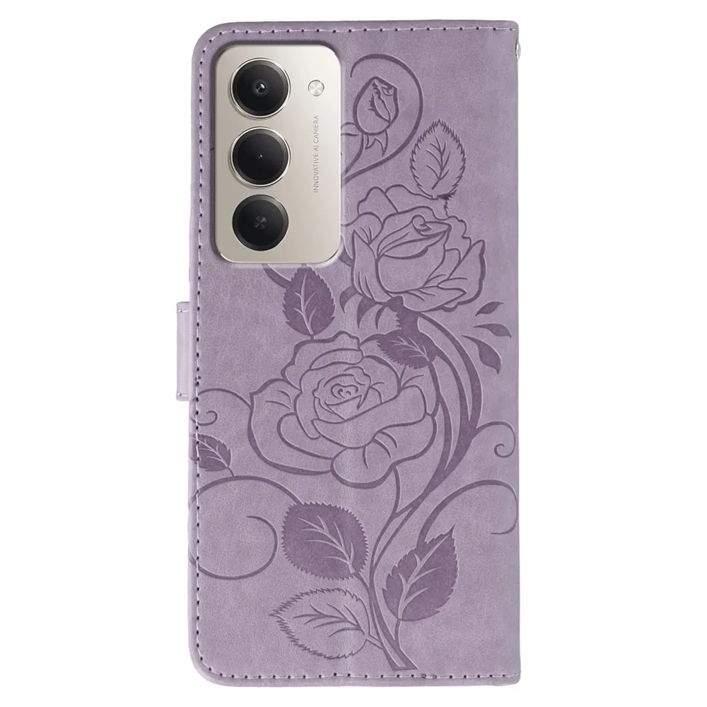 Lila pénztárca tok Rózsák Xiaomi Redmi 15 5G számára