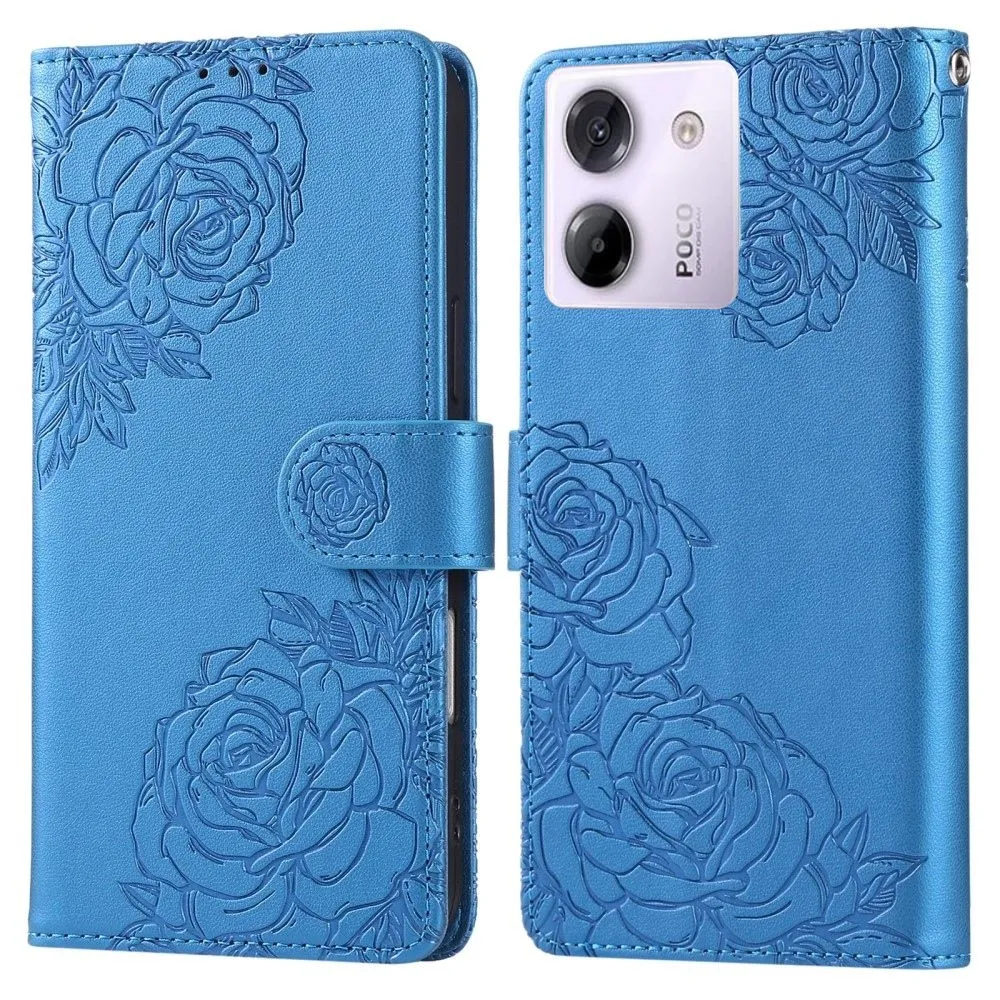Kék pénztárca tok Rose a Xiaomi Poco M7 Pro 5G/Note 14 5G számára