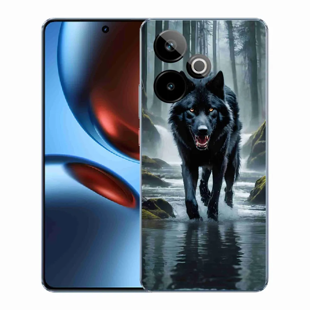 Rugalmas zselés tok mmCase képpel a Realme GT 7 5G/GT 7T 5G számára - fekete farkas