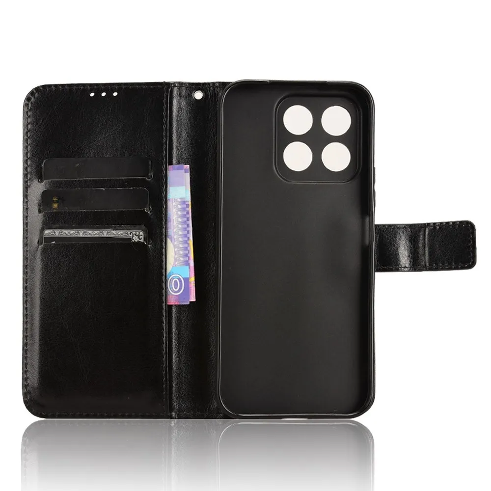 Fekete pénztárca tok Őrült a Honor X8c számára