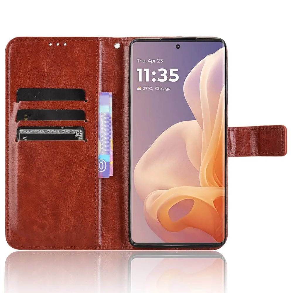 Barna pénztárca tok Őrült Motorola Moto G85 5G számára