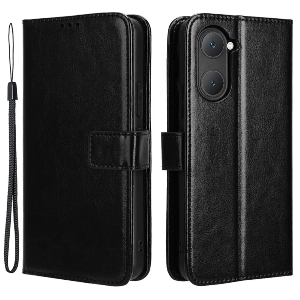 Fekete pénztárca tok Őrült Vivo Y28s 5G számára