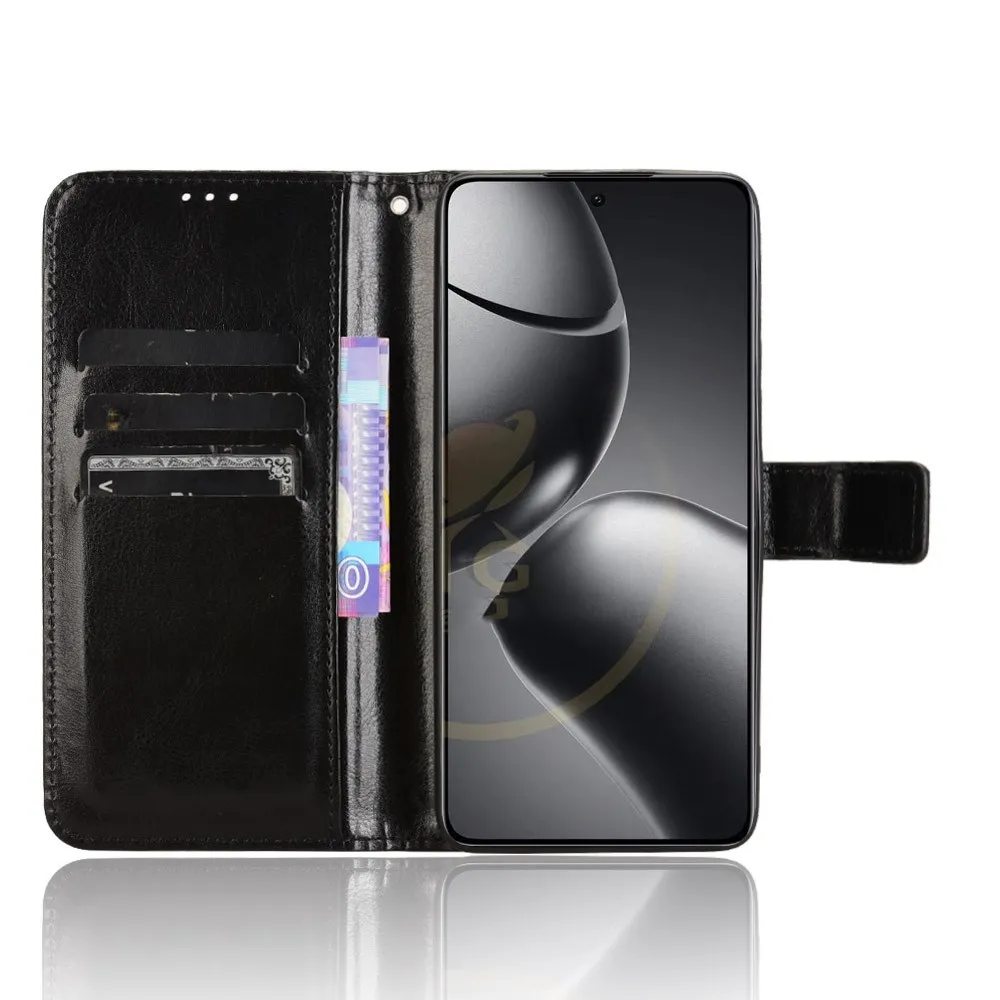 Fekete pénztárca tok őrült Xiaomi 14T Pro számára