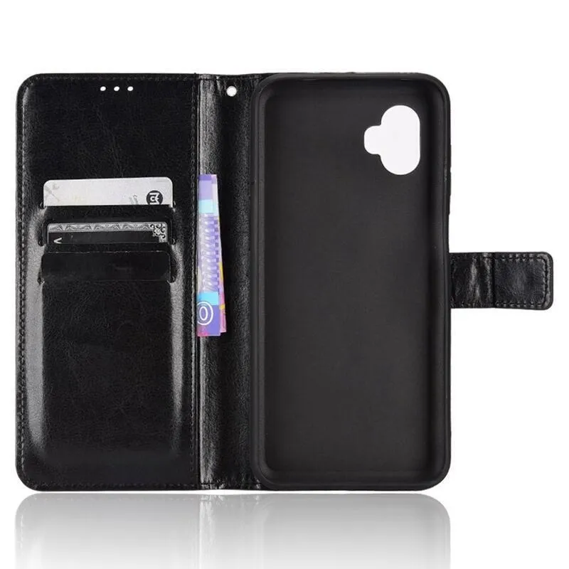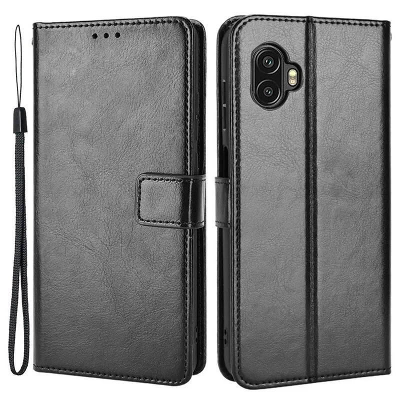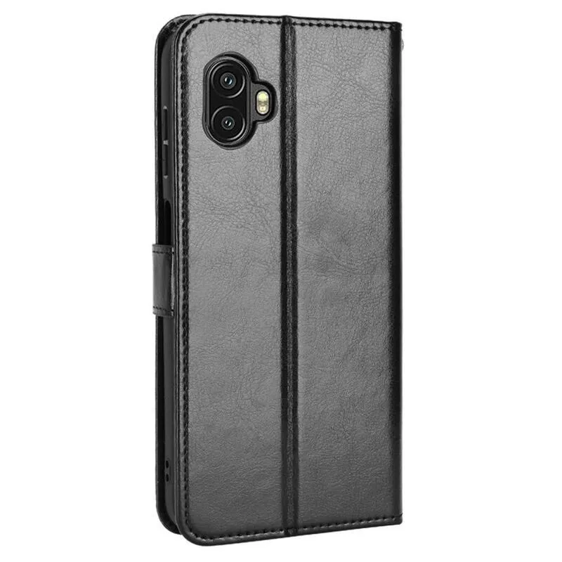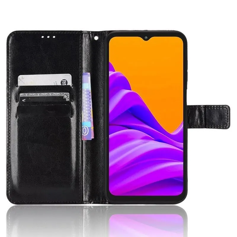 Fekete pénztárca tok őrült Samsung Galaxy Xcover 6 Pro számára