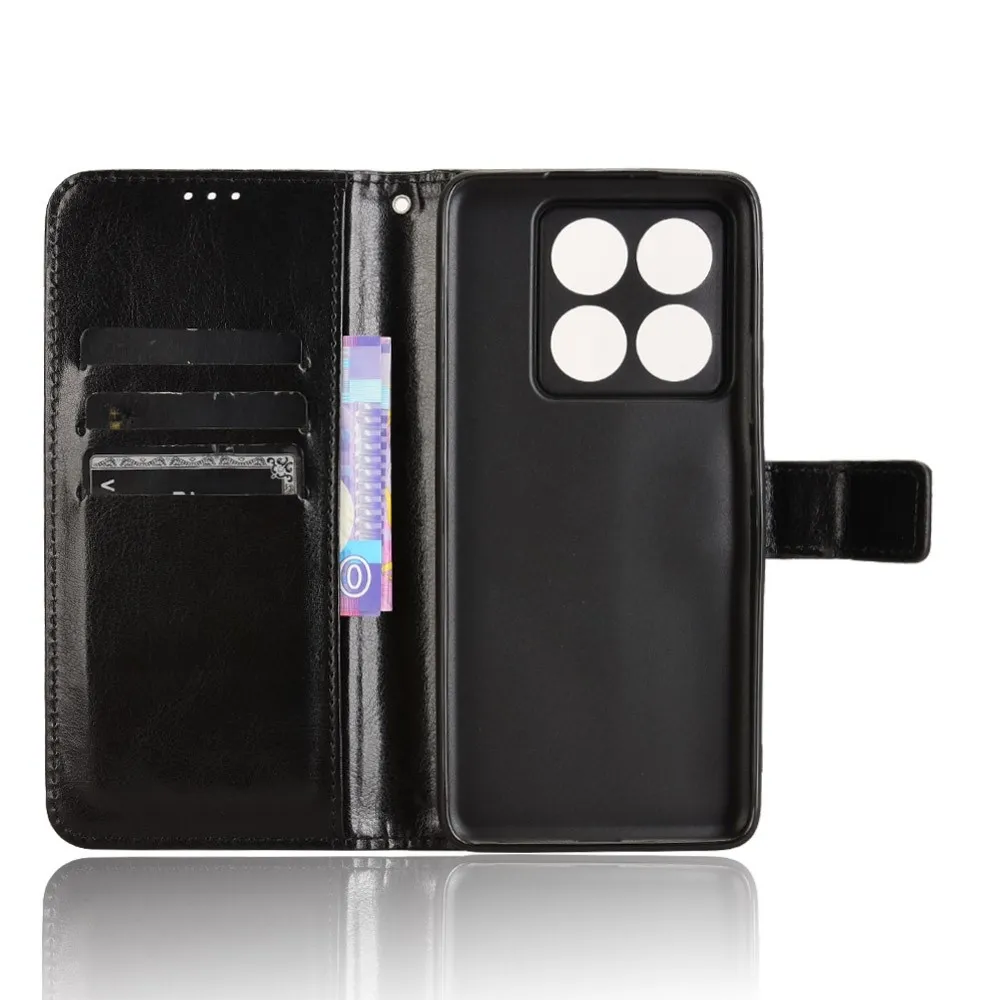 Fekete pénztárca tok őrült Xiaomi 14T számára