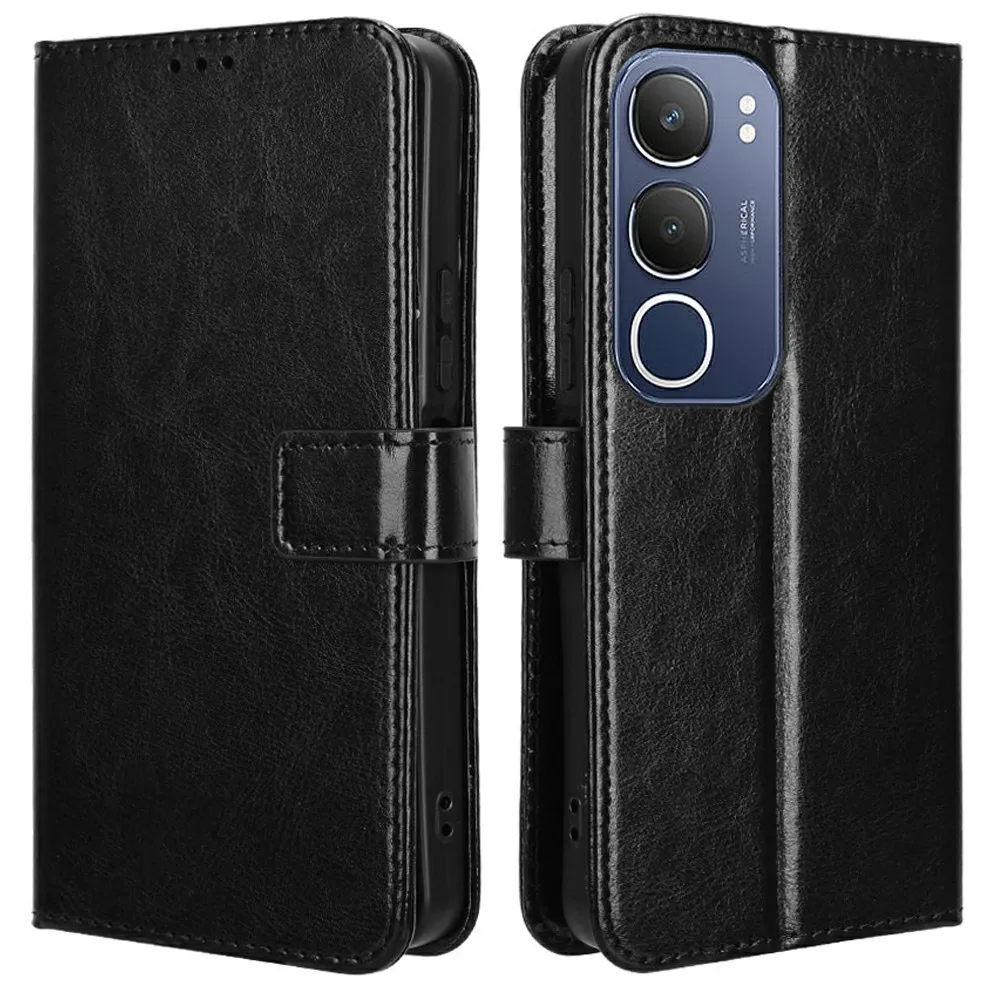 Fekete pénztárca tok Őrült Vivo Y19s számára