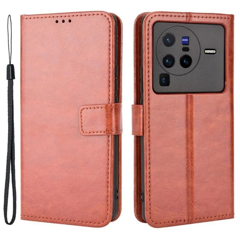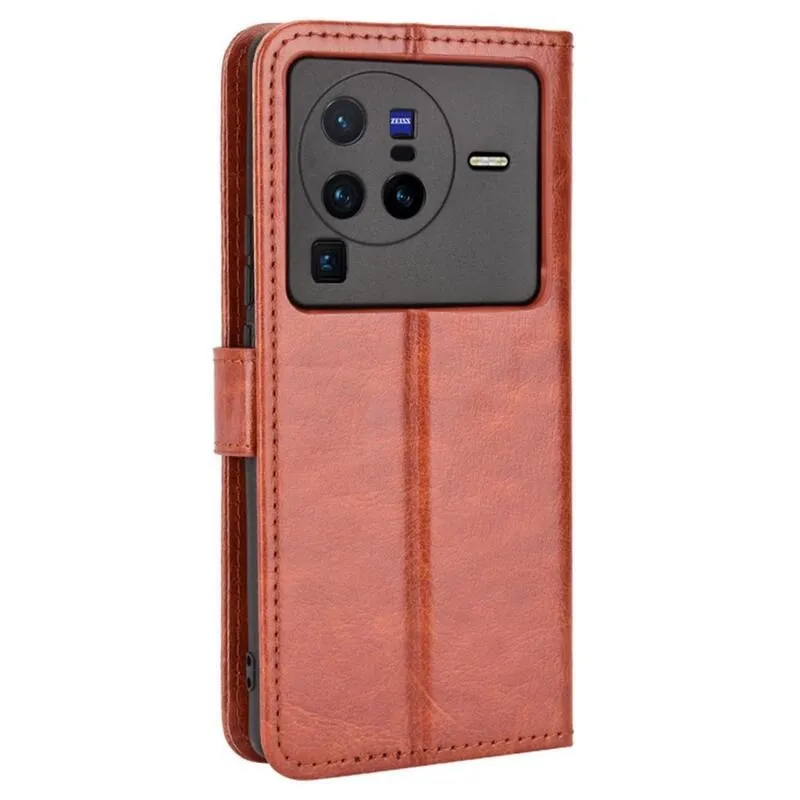 Őrült pénztárca tok mobiltelefonhoz Vivo X80 Pro - barna