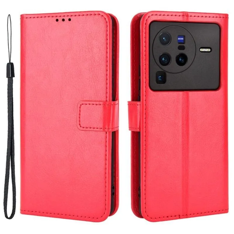 Őrült pénztárca tok mobiltelefonhoz Vivo X80 Pro - piros