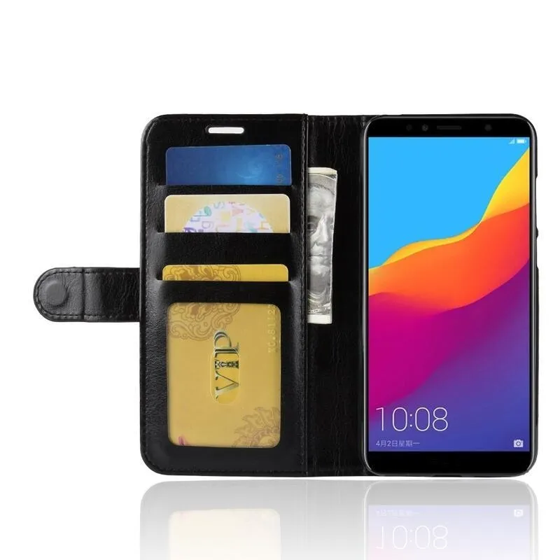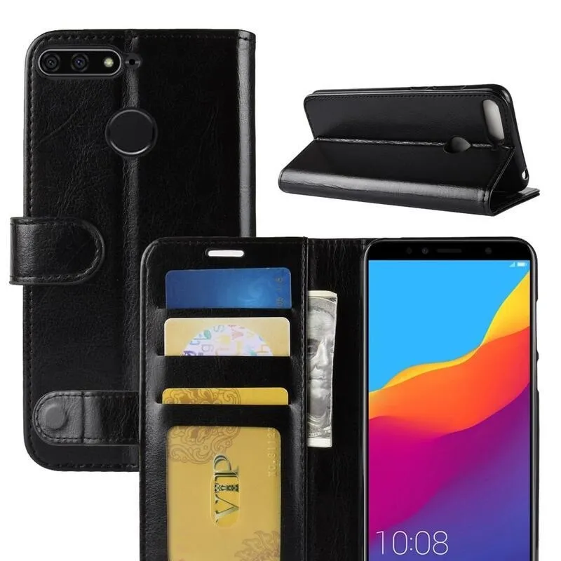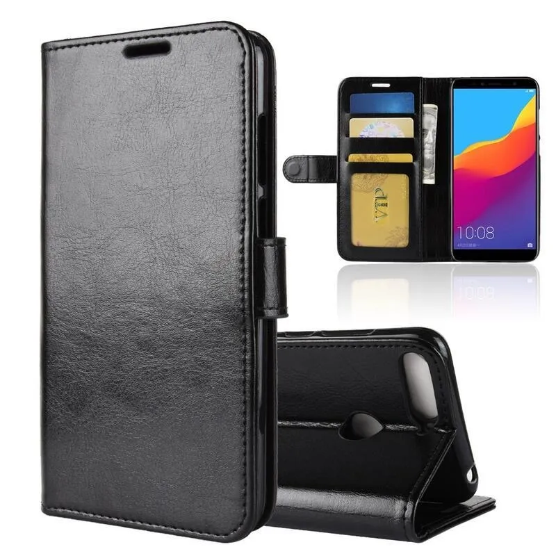 Őrült PU bőr pénztárca tok a Honor 7A-hoz - fekete