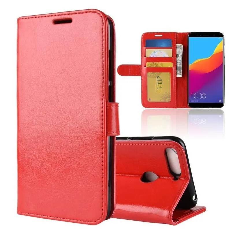 Őrült PU bőr pénztárca tok a Honor 7A-hoz - piros