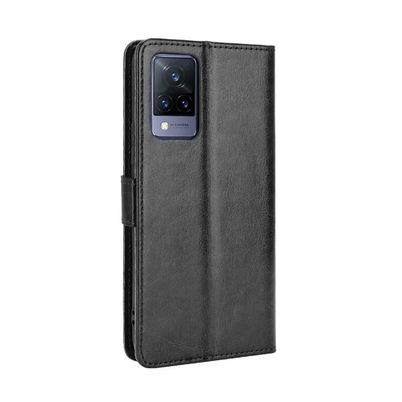 Őrült PU bőr pénztárca tok a Vivo V21 4G/5G-hez - fekete