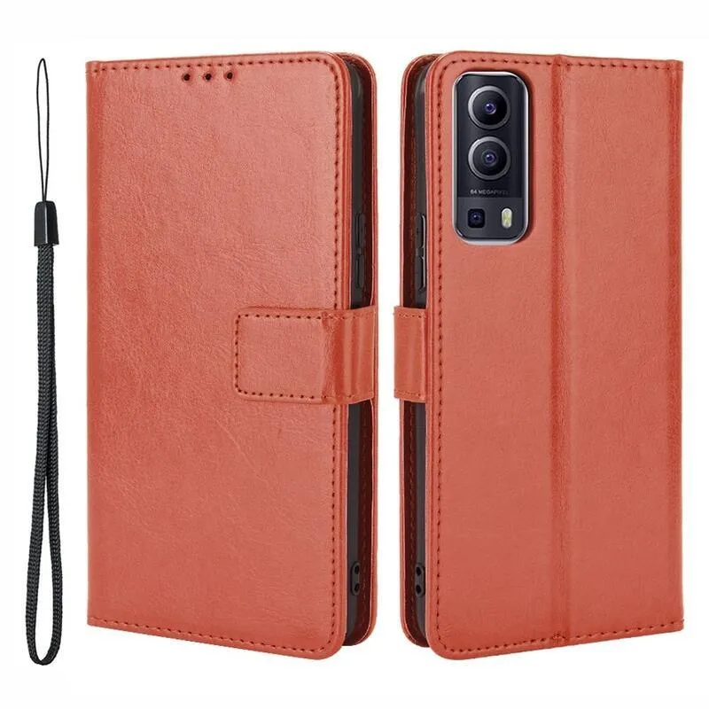 Őrült PU bőr pénztárca tok a Vivo Y72 5G/Y52 5G számára - barna