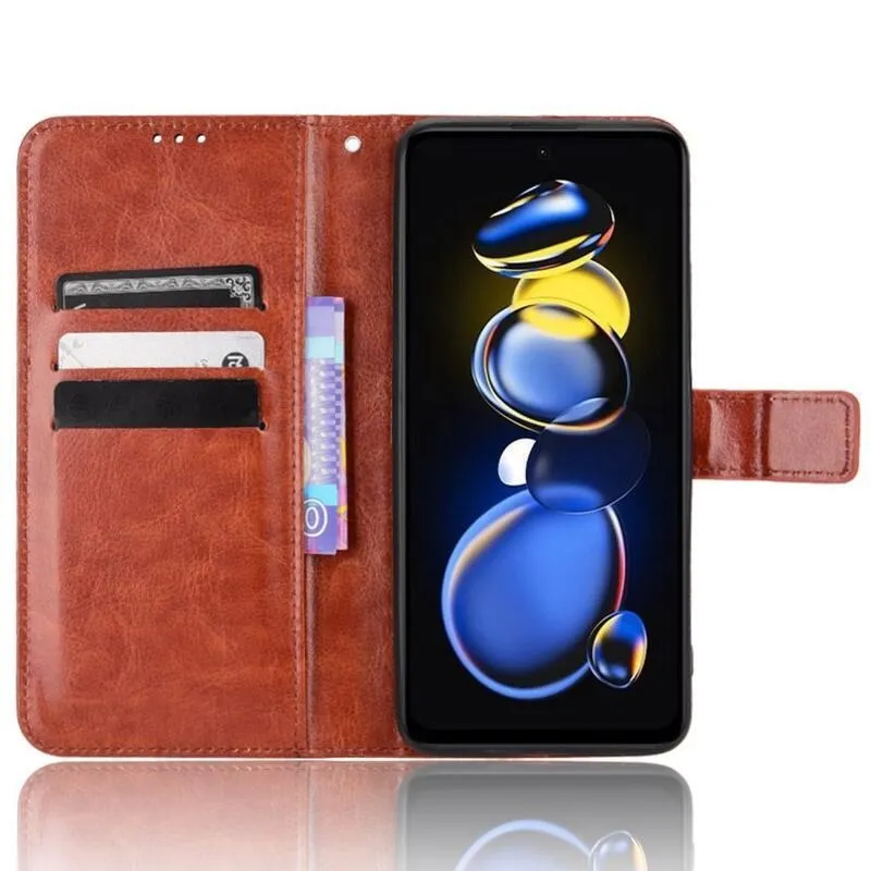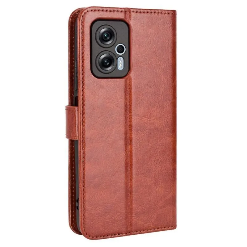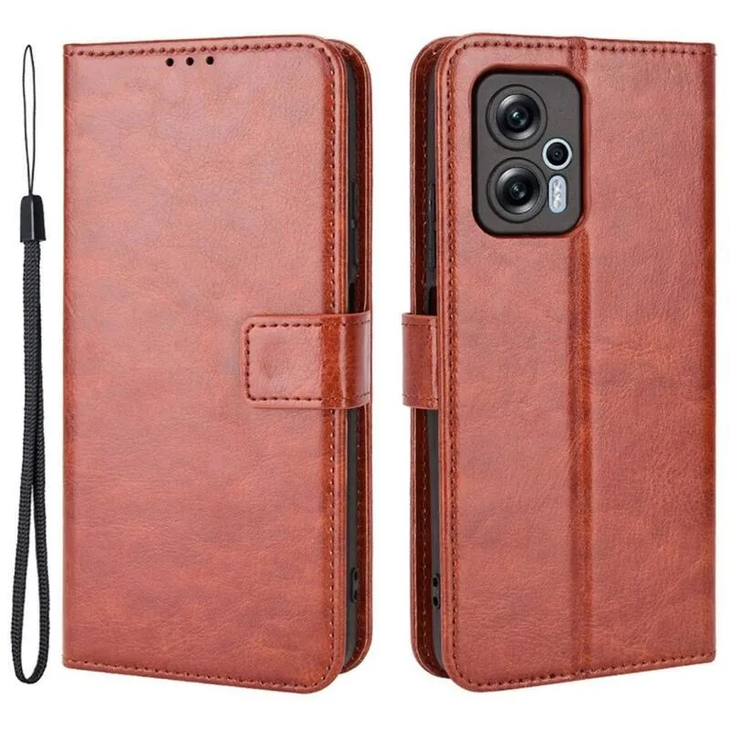 Őrült PU bőr pénztárca tok a Xiaomi Poco X4 GT 5G számára - barna