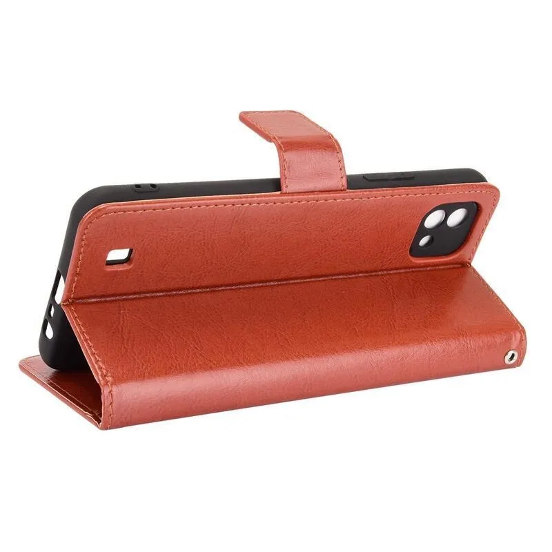 Őrült PU bőr pénztárca tok mobilhoz Realme C11 (2021) - barna
