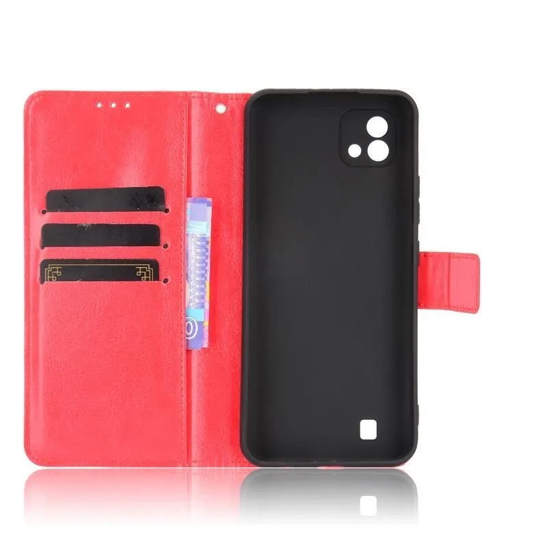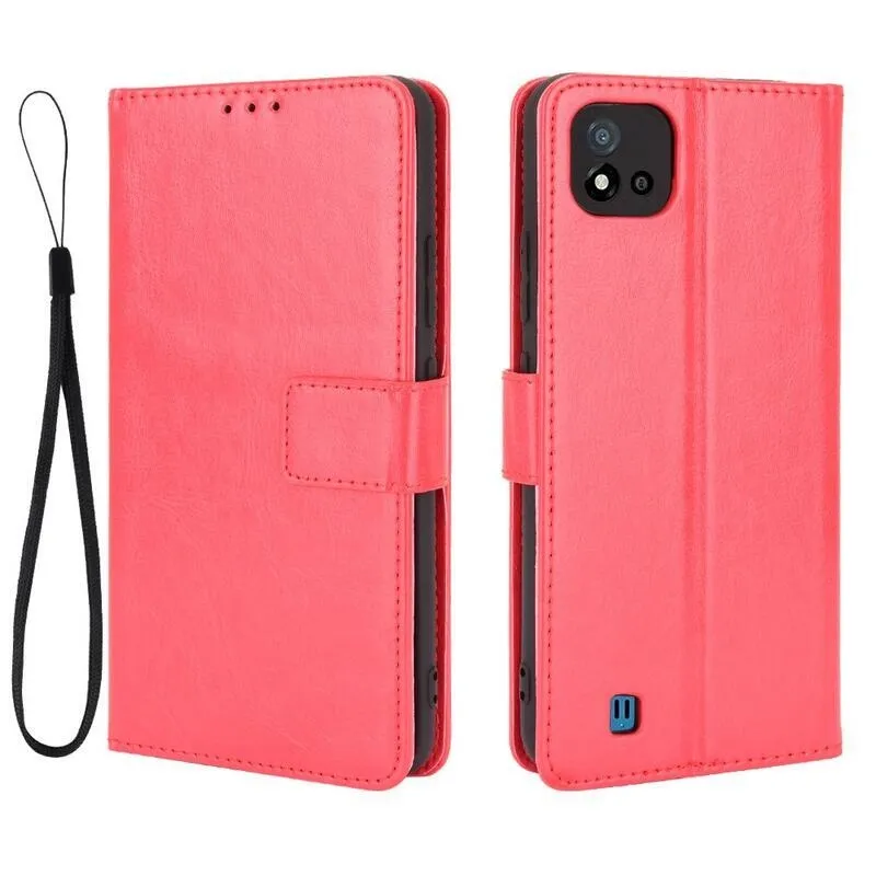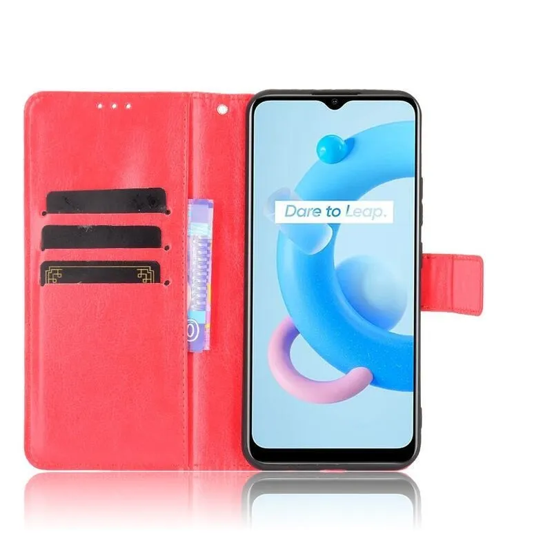Őrült PU bőr pénztárca tok mobilhoz Realme C11 (2021) - piros