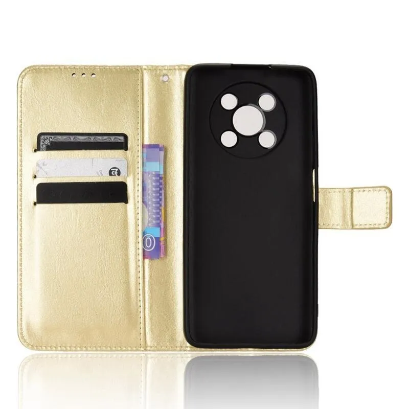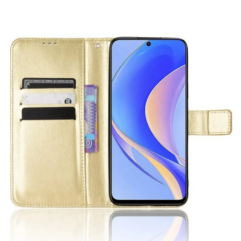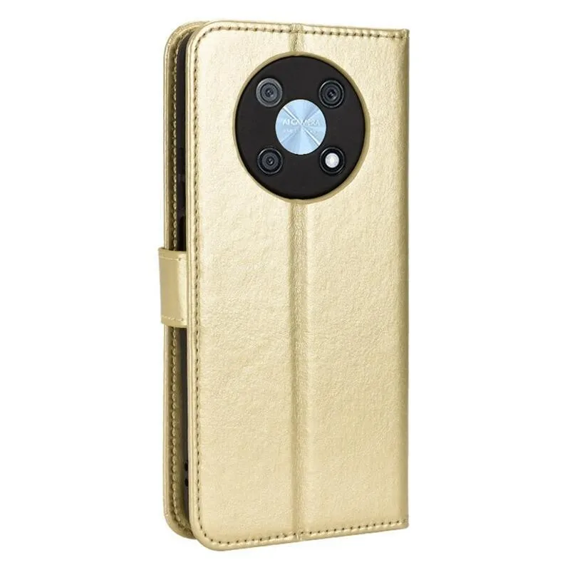 Őrült PU bőr pénztárca tok mobiltelefonhoz Huawei Nova Y90 - arany színű