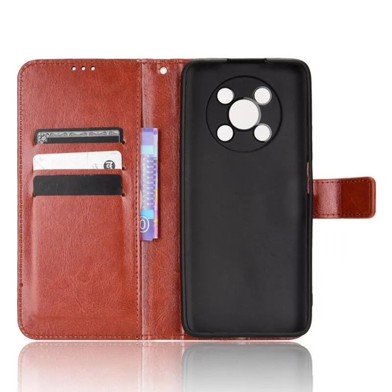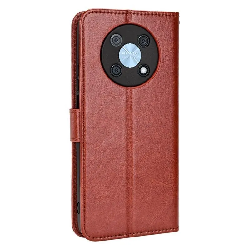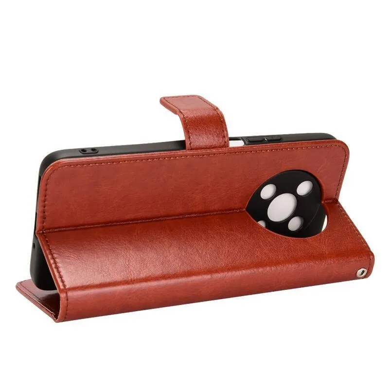 Őrült PU bőr pénztárca tok mobiltelefonhoz Huawei Nova Y90 - barna