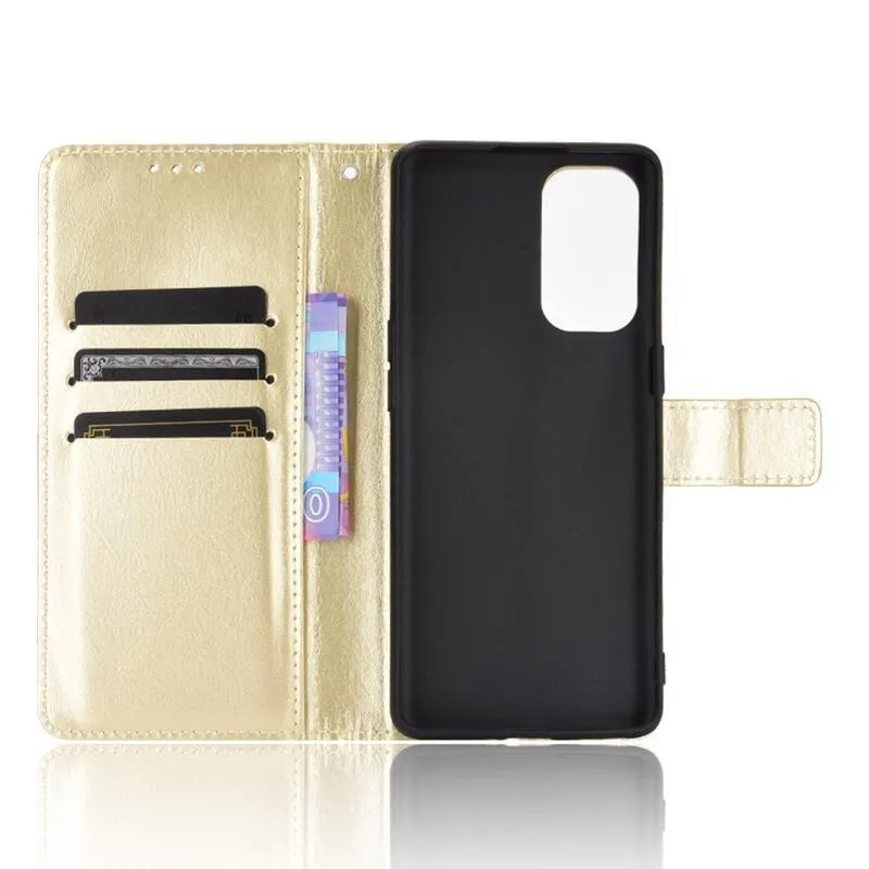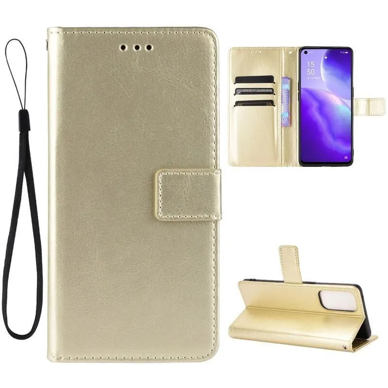 Őrült PU bőr pénztárca tok Oppo Reno 5 4G/5G - arany színben