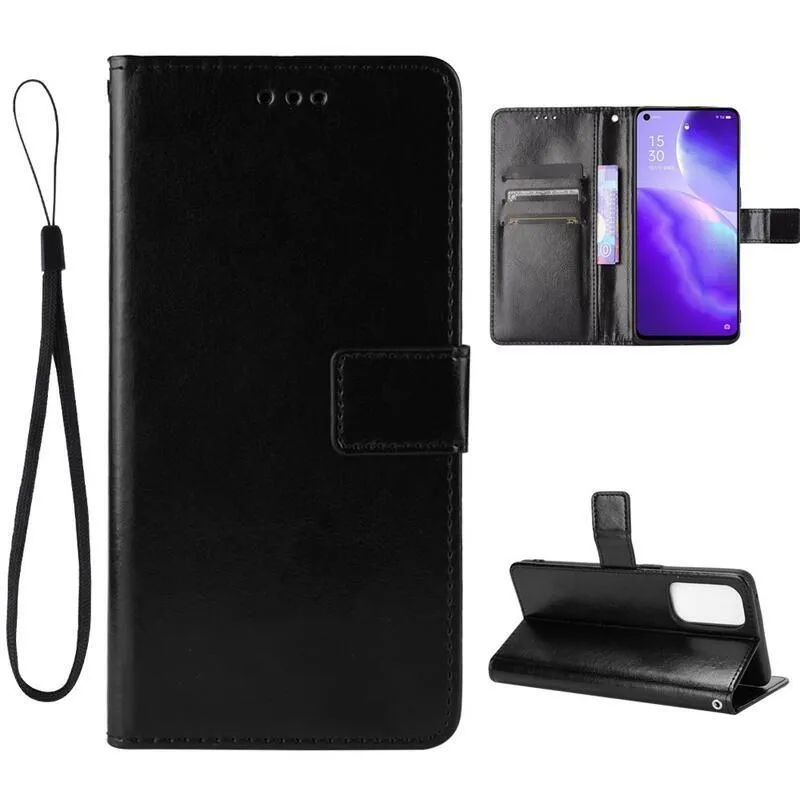 Őrült PU bőr pénztárca tok Oppo Reno 5 4G/5G-hez - fekete