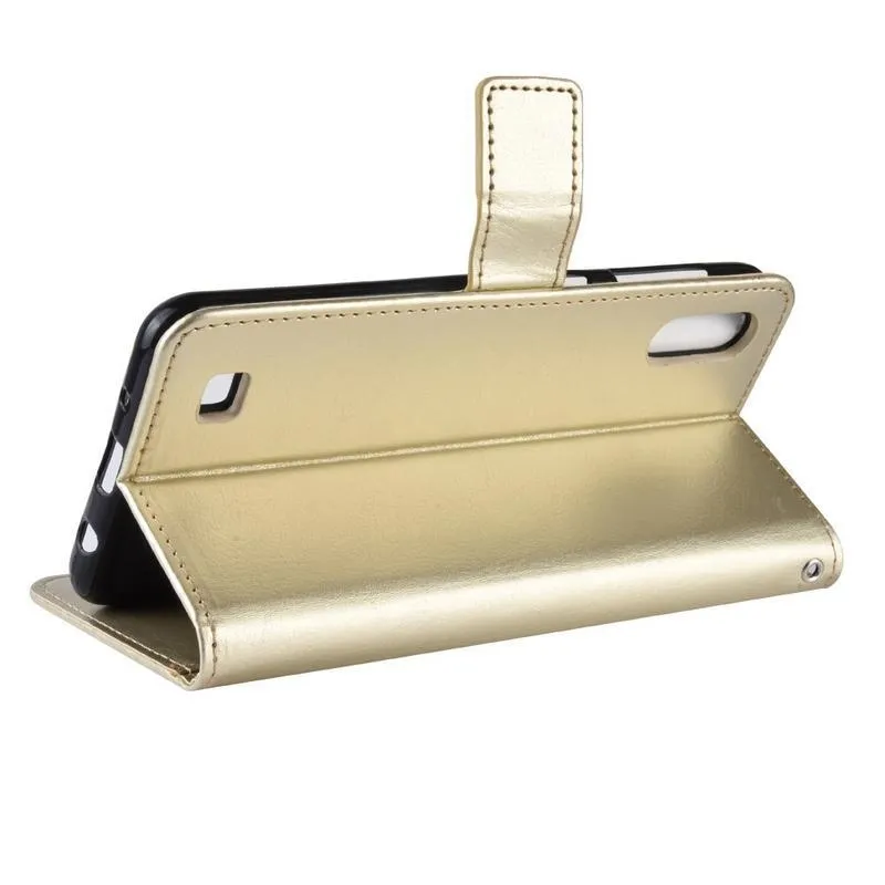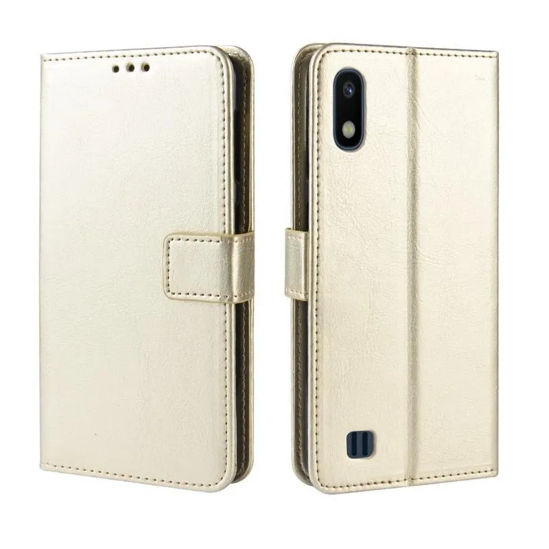 Őrült PU bőr pénztárca tok Samsung Galaxy A10 készülékhez - arany színben