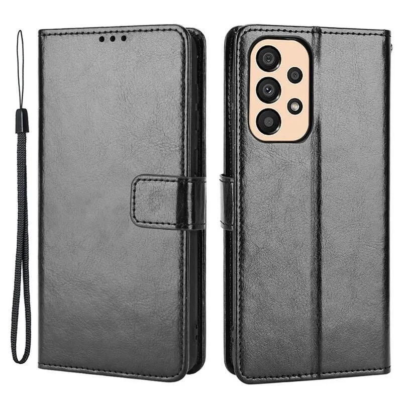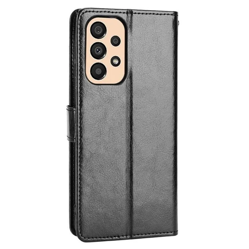 Őrült PU bőr pénztárca tok Samsung Galaxy M23 5G-hez - fekete