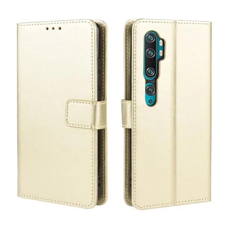 Őrült PU bőr pénztárca tok Xiaomi Mi Note 10 / Mi Note 10 Pro - arany színben