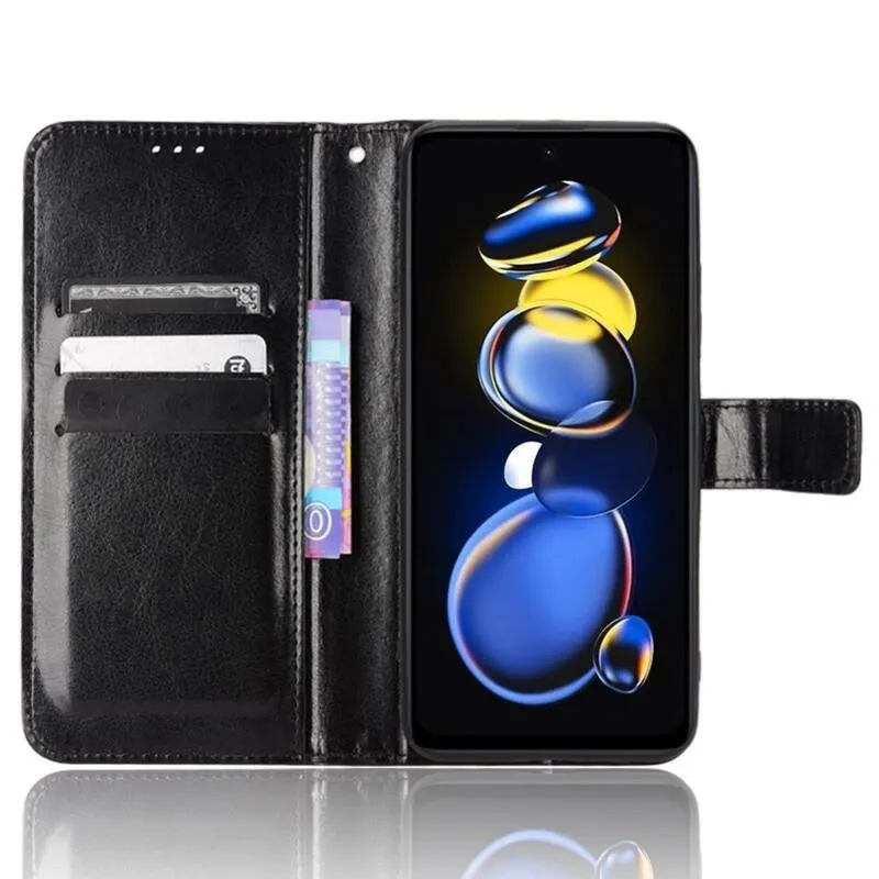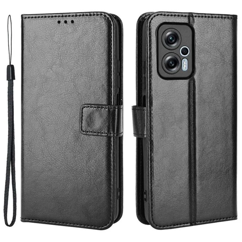 Őrült PU bőr pénztárca tok Xiaomi Poco X4 GT 5G - fekete
