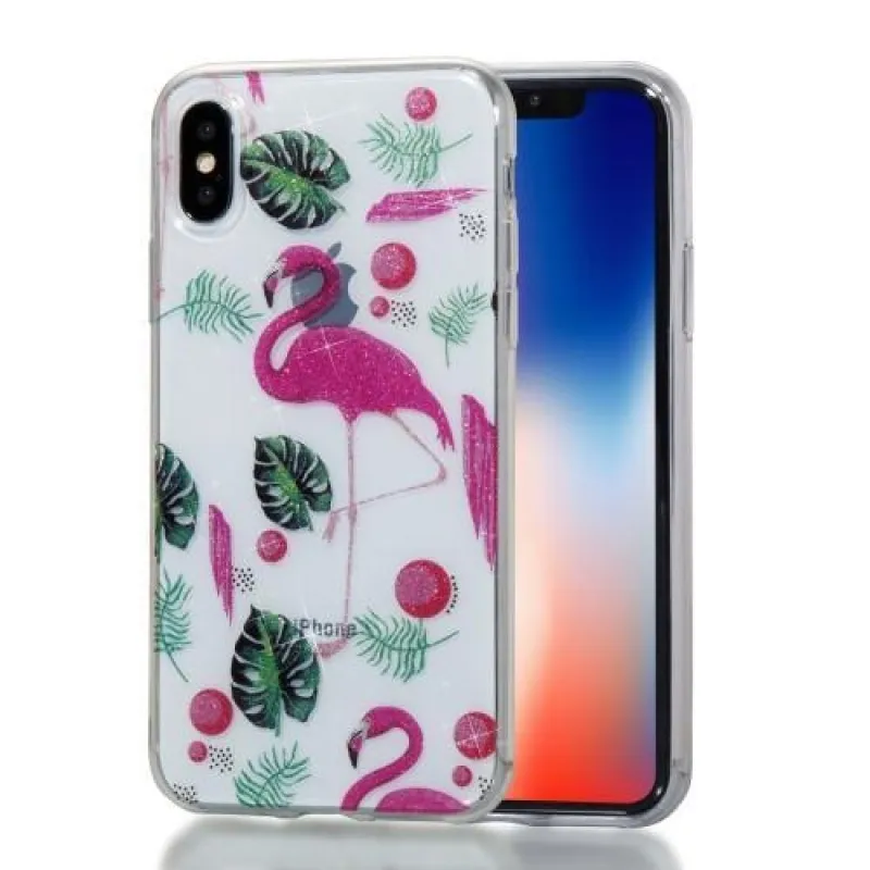 Csillogó szilikonborítás flamingó motívummal iPhone X készülékhez