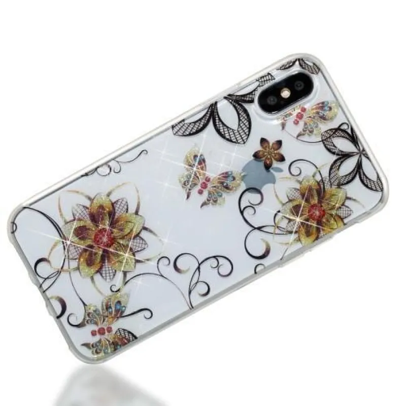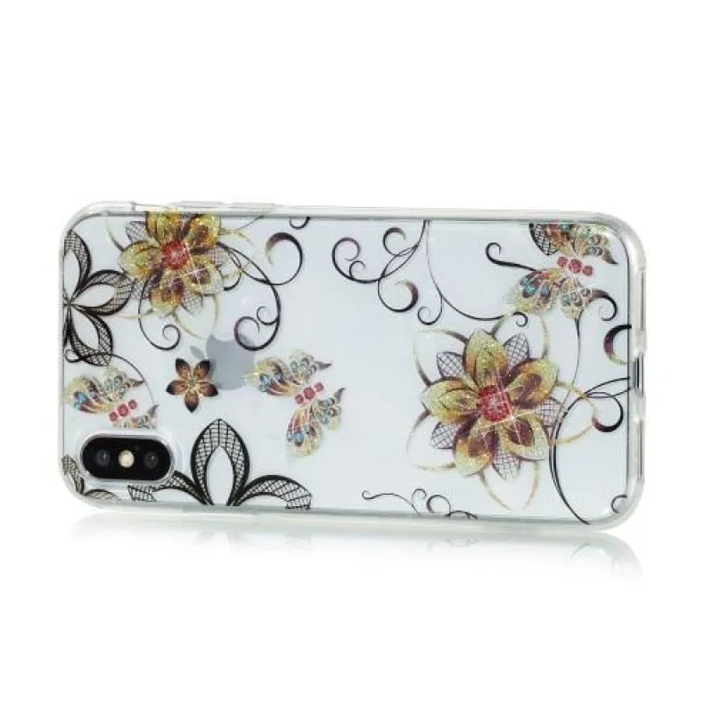 Csillogó szilikon borítás virágokkal és pillangókkal iPhone X készülékre