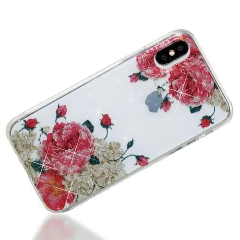 Csillogó szilikon borítás rózsa motívummal iPhone X készülékhez