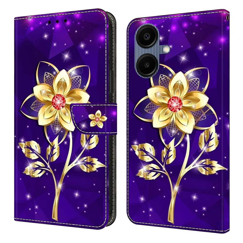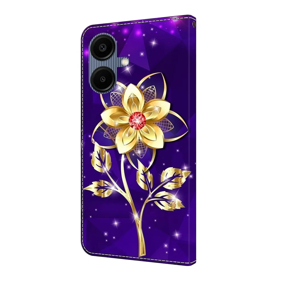 Tárca tok Sima Samsung Galaxy A07 4G és arany virághoz