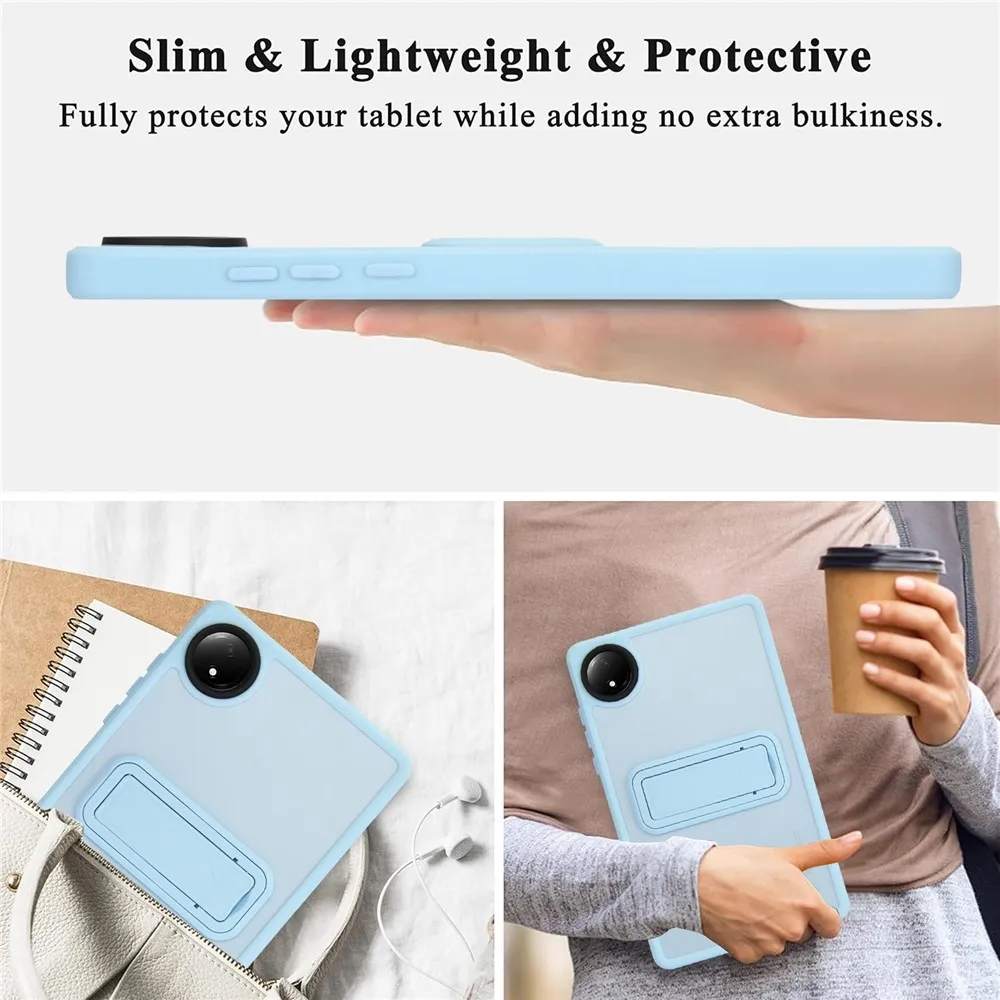✅【Esésérzet】Ez a vékony, kemény hátú géltok állvánnyal Xiaomi Redmi Pad SE 8.7 tablethez világoskék színben, bőrbarát TPU és PC anyagokból készült, kényelmes és sima kézérzetet biztosítva.