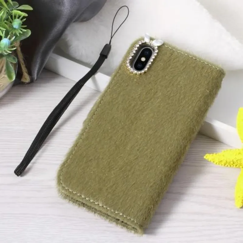 Puha flip tok iPhone X készülékhez zöld színű műbőrből, mágneses záródással