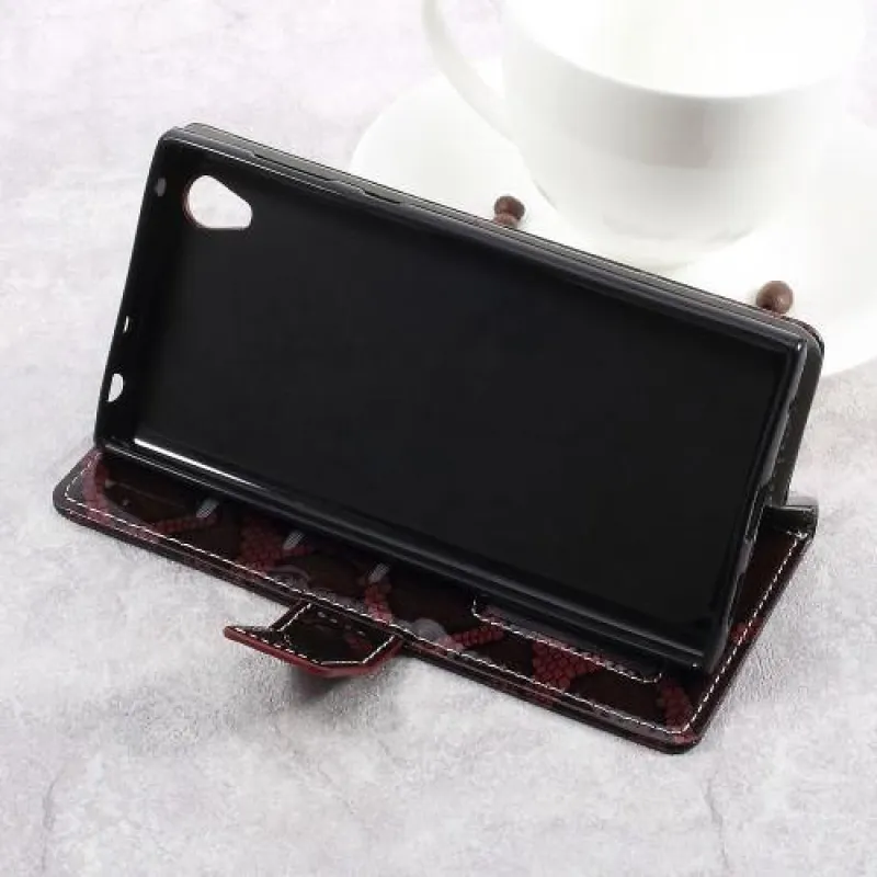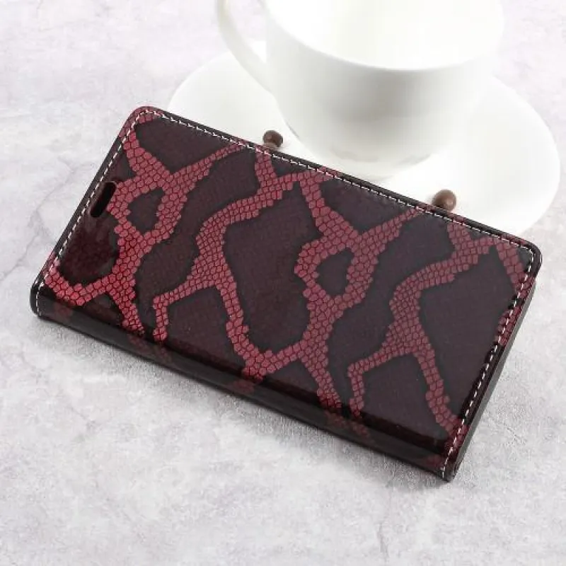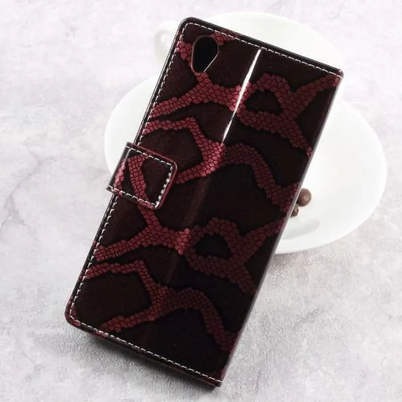 Elegáns Sony Xperia L1 mobiltelefon tok bordó színben, kígyóbőr motívummal