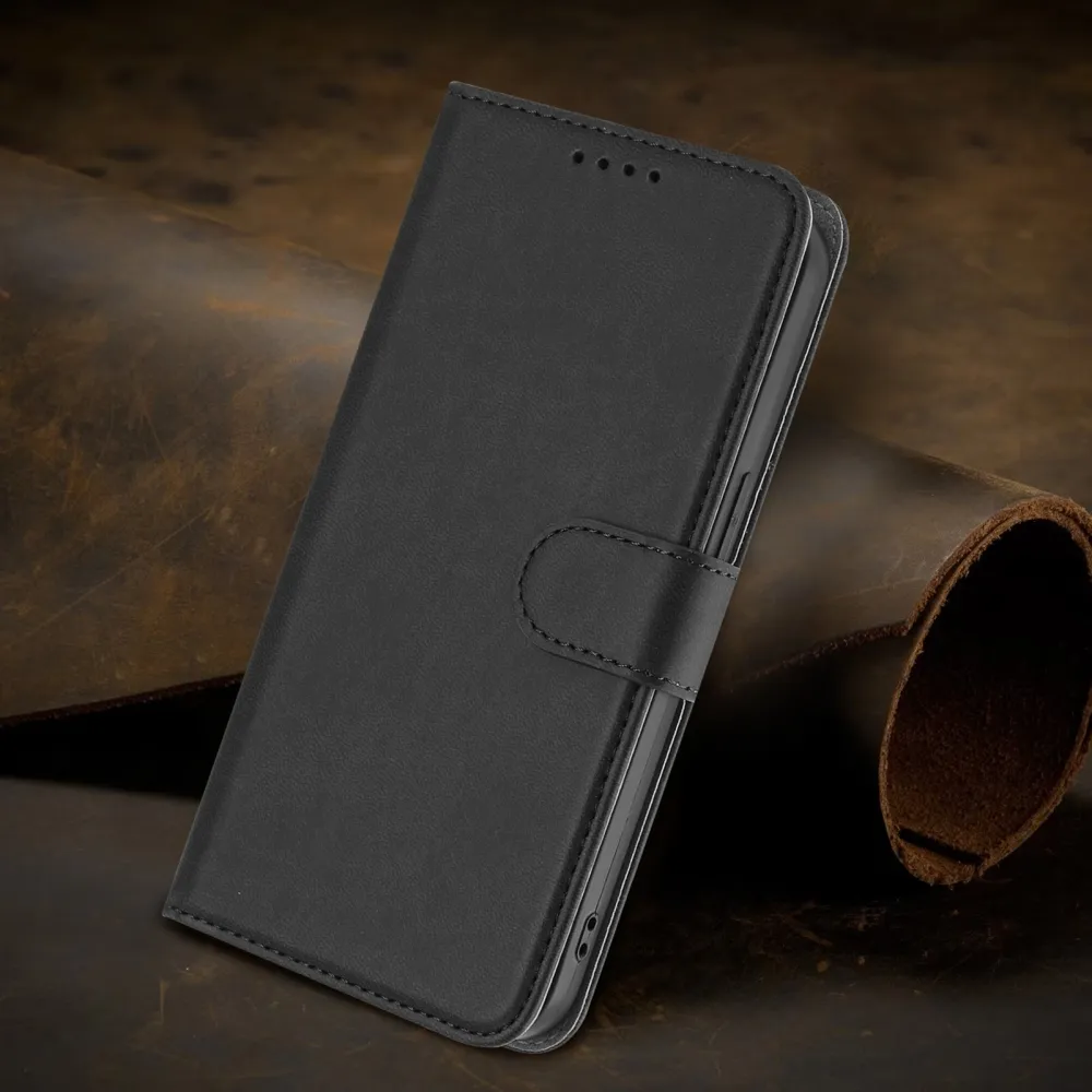✅【Prémium PU bőr】A Samsung Galaxy A07 4G fekete Snap tok kiváló minőségű PU bőrből készült, elegáns és tartós kialakítással, amely fokozza a telefon megjelenését.