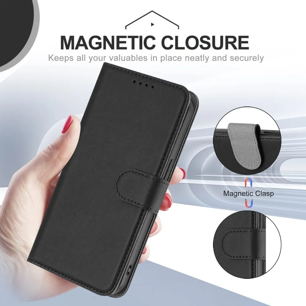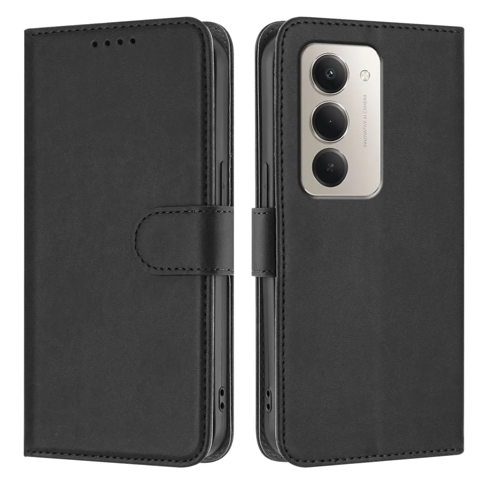 ✅【Prémium PU bőr】A Xiaomi Redmi 15C 4G/5G (173mm) fekete Snap tok kiváló minőségű PU bőrből készült, elegáns és tartós kialakítással, amely fokozza a telefon megjelenését.