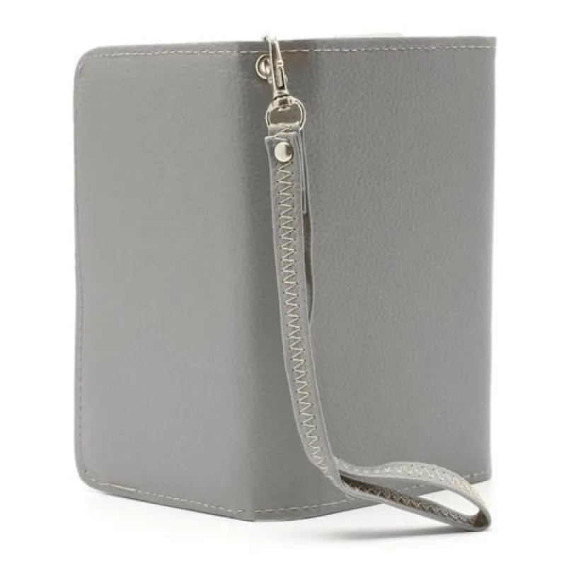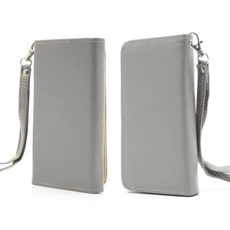 Egyszerű, univerzális műbőr telefontok 137 x 71 x 8,6 mm-es telefonokhoz, szürke színben.
