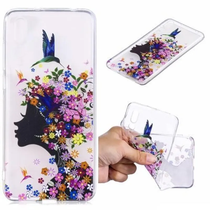 Könnyű zselés borítás Huawei P20 mobiltelefonra egy viráglány képével.
