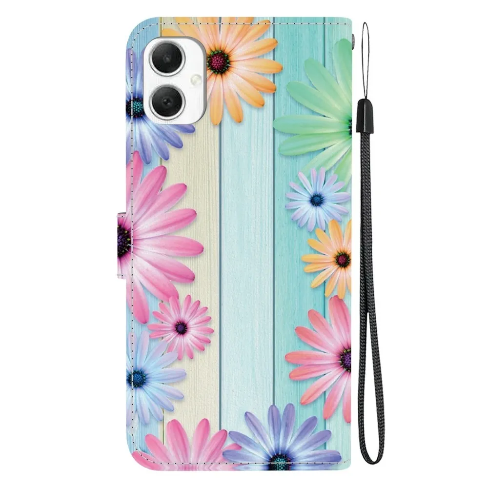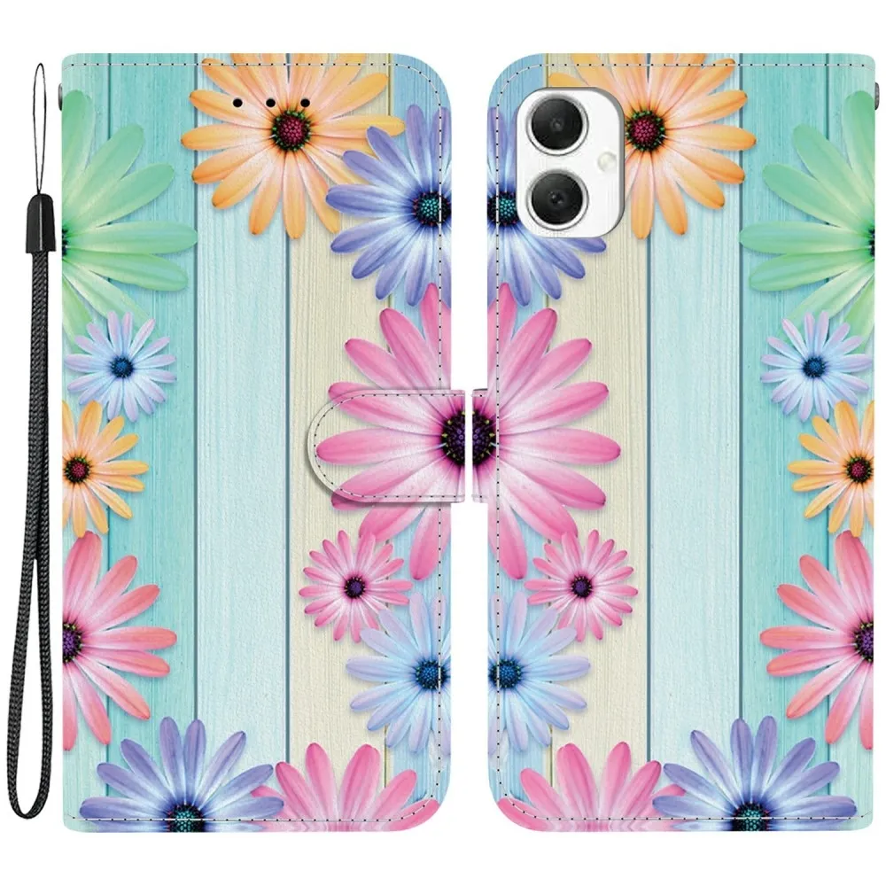 Sokoldalú pénztárca tok a Samsung Galaxy A06 4G mobiltelefonhoz és színes gerbera motívumhoz