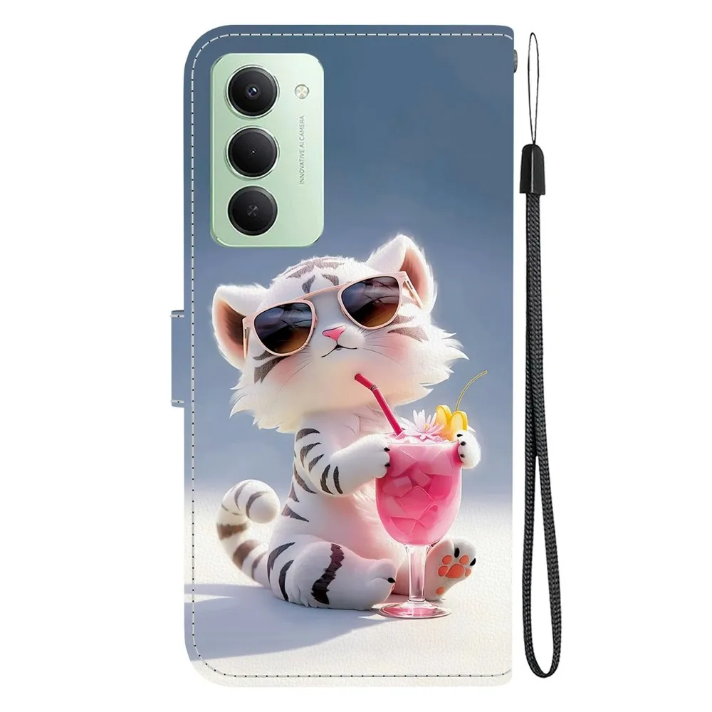 Sokoldalú pénztárca tok Xiaomi Redmi 15 5G (169mm) és fehér tigris motívumhoz