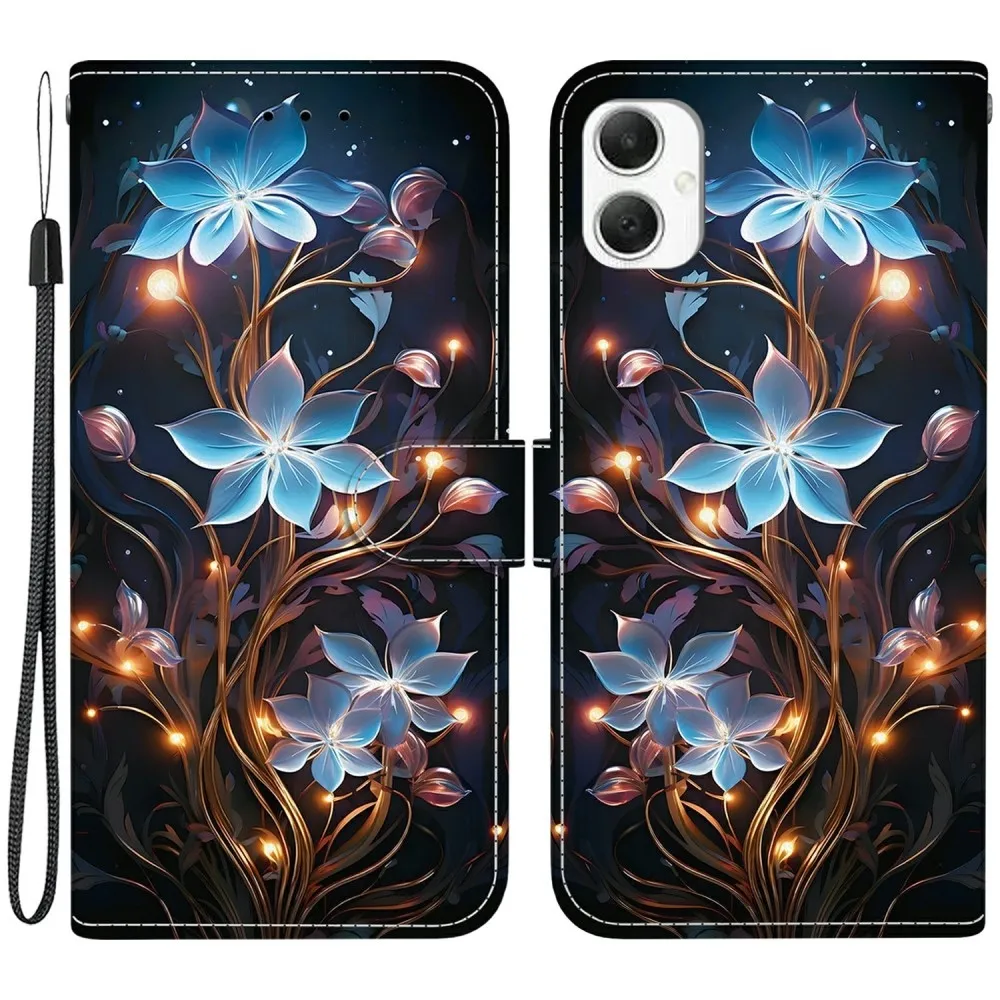 Sokoldalú pénztárca tok Samsung Galaxy A06 4G és kék virágokhoz