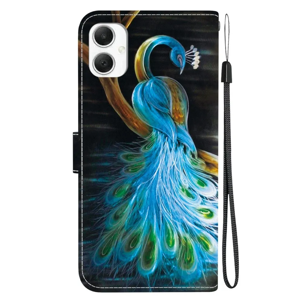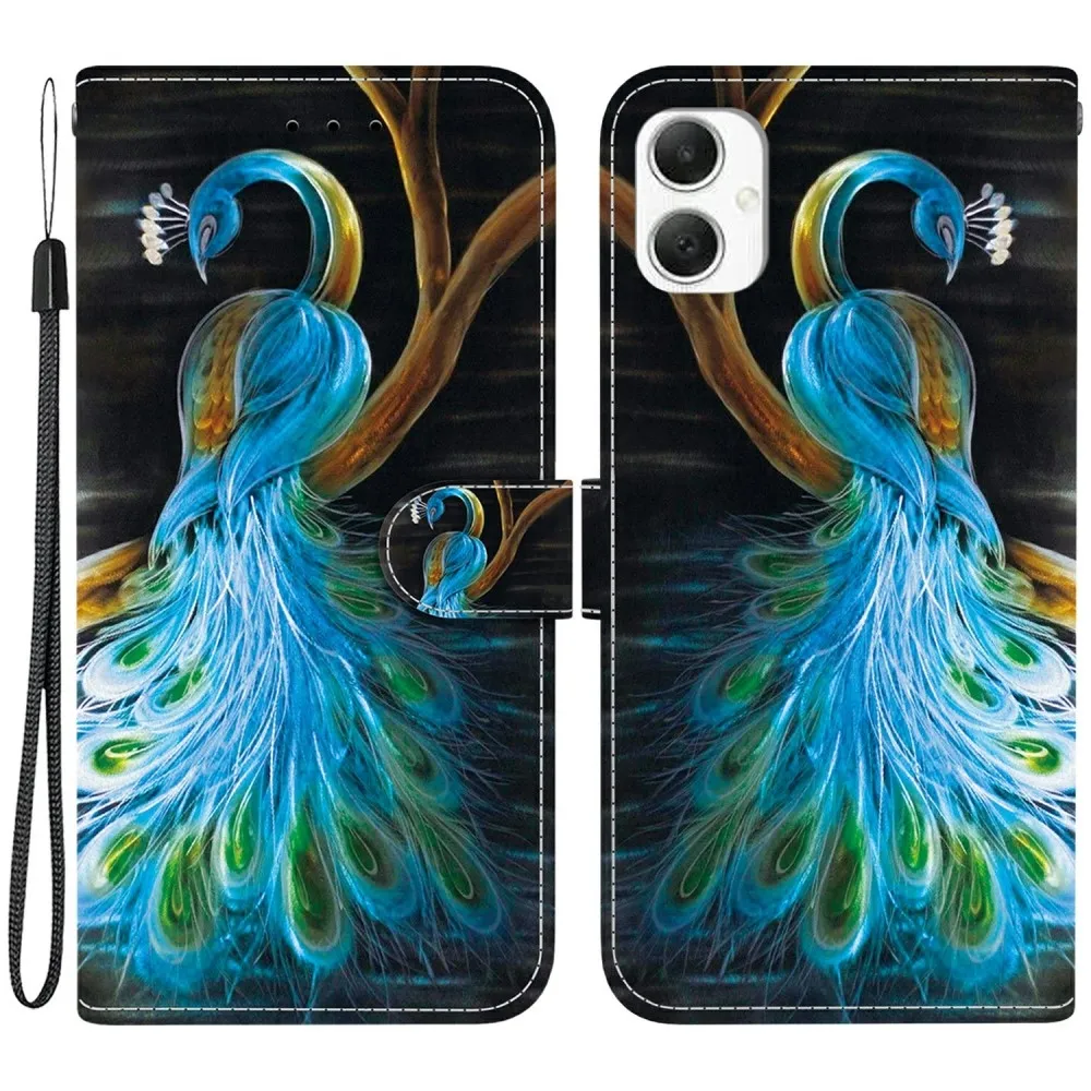 Sokoldalú pénztárca tok Samsung Galaxy A06 4G mobiltelefonhoz és páva motívumhoz