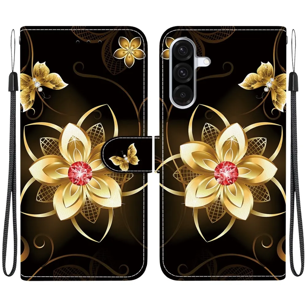 Sokoldalú pénztárca tok a Samsung Galaxy A36 5G/A56 5G és arany virághoz