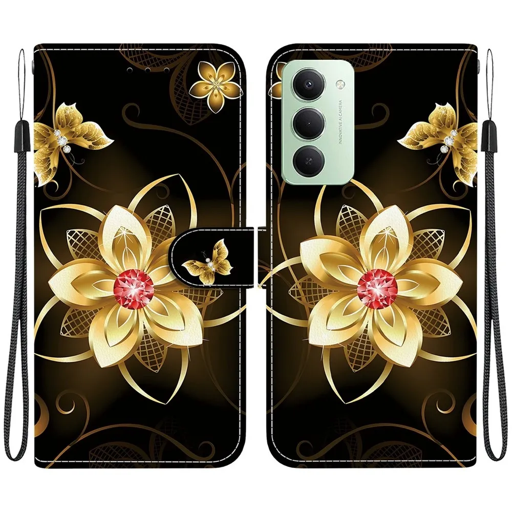 Sokoldalú pénztárca tok a Xiaomi Redmi 15 5G (169mm) és arany virághoz