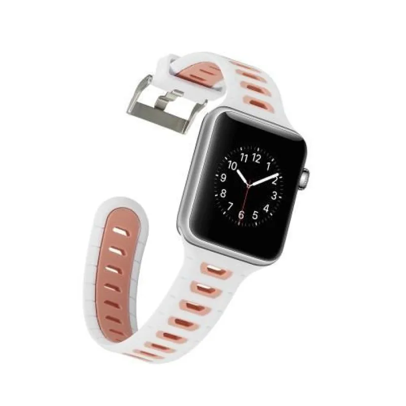 Sportos szilikon szíj Apple Watch 38mm-es órához - fehér és rózsaszín