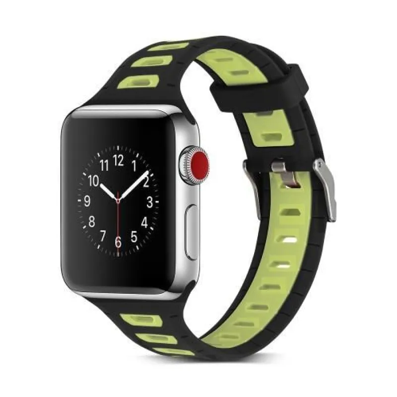 Sportos szilikon szíj Apple Watch 38mm-es órához - fekete és sárgászöld színben