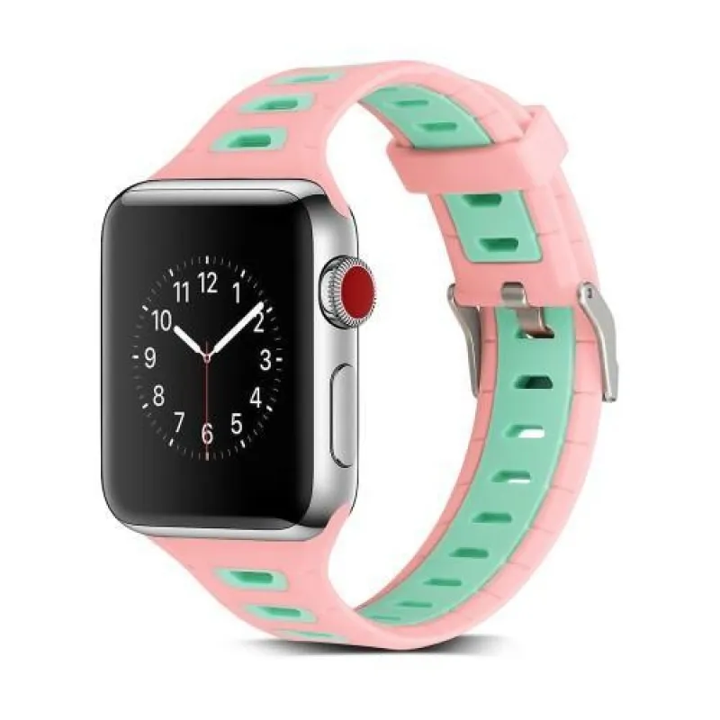 Sportos szilikon szíj Apple Watch 38mm-es órához - rózsaszín és zöld