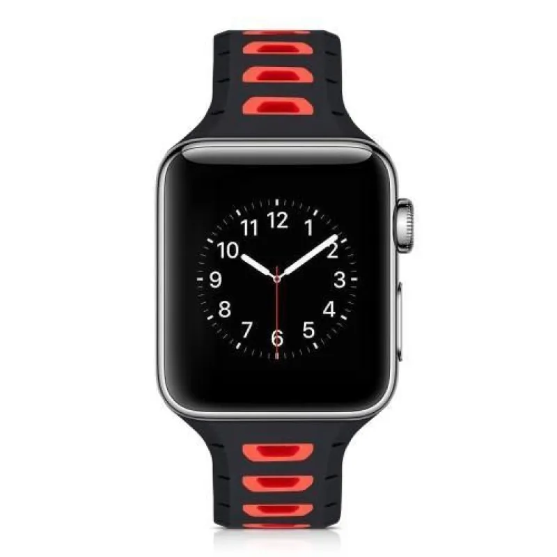 Sportos szilikon szíj az Apple Watch 38mm-es órájához - fekete és piros színben